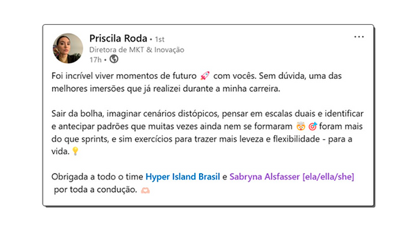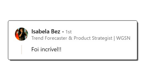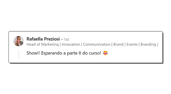 "Gostei dos facilitadores que dominam o tema; do material pre-work com bastante referências; do design do curso em que os assuntos se amarram de forma fluida; das ferramentas uteis; dos desafios que nos colocam para utilizar em nossa realidade o conteúdo aprendido"